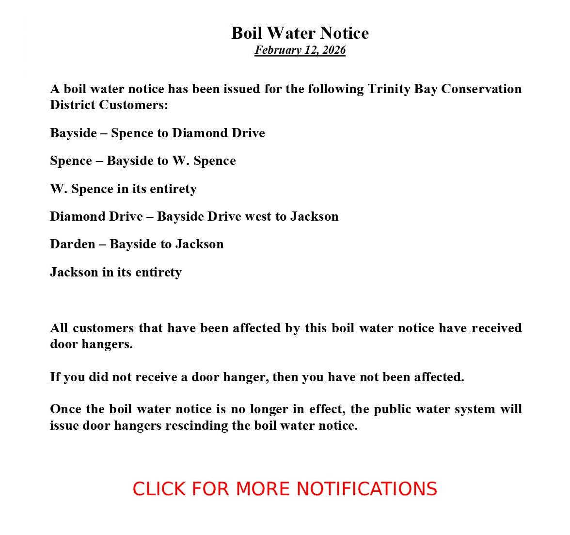 BOIL WATER NOTICES, HOLIDAY CLOSURES, EMERGENCY OFFICE CLOSURES, ETC…