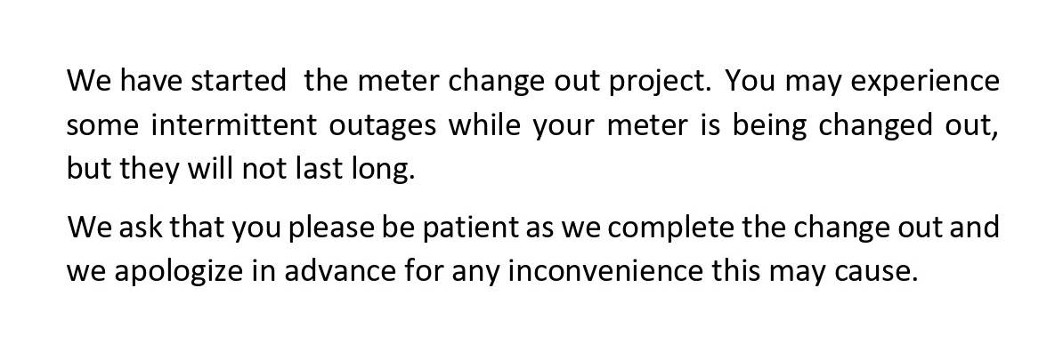 Our Water Crews are currently performing a Water Meter Change Out Project within the Winnie/Stowell area.